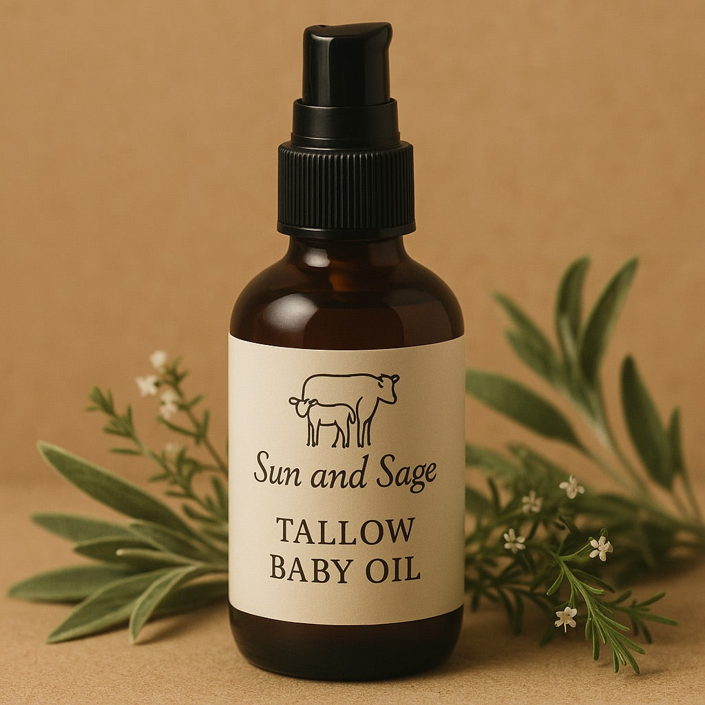 Nurture your baby’s delicate skin with our Tallow Baby Oil—a calming, all-natural blend crafted to soothe, protect, and deeply nourish from day one.